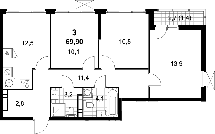 Площадь от 69 м2