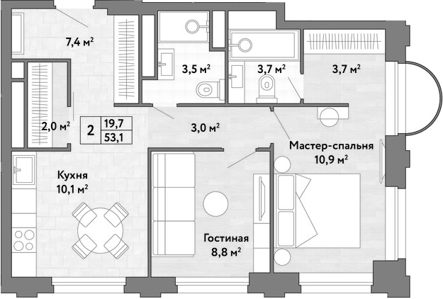 В жилом комплексе предложено более 200 вариантов планировок. Здесь есть квартиры с гардеробными, мастер-спальнями, окном в ванной, прачечной, а также квартиры с 5 окнами в кухне-гостиной и кабинетом.