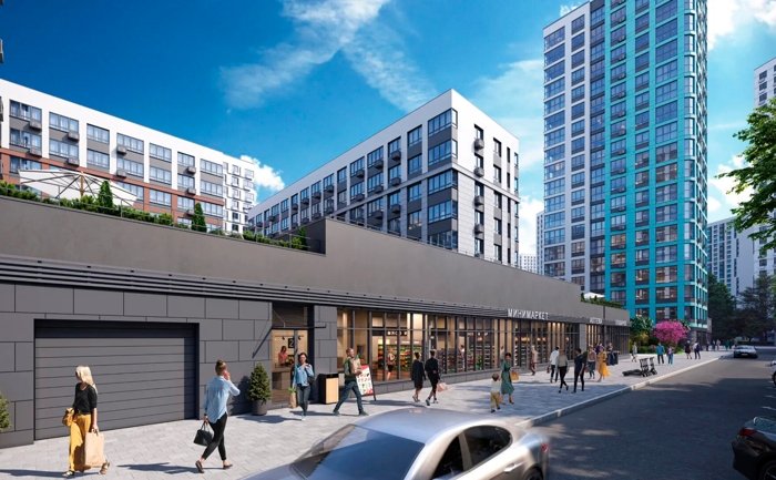 На первых этажах домов расположены коммерческие помещения, а для владельцев автомобилей предусмотрен подземный паркинг с прямым доступом на лифте.
