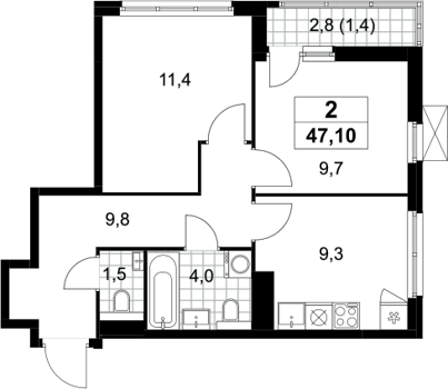 Площадь от 47 м2